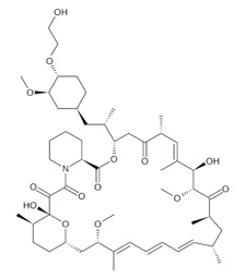 依维莫司是雷帕霉素衍生物(西罗莫司),与雷帕莫司作用相似,是mTOR(雷帕莫司的作用靶点)的抑制剂。目前用作免疫抑制剂,以防止器官移植的排斥反应。与其他mTOR抑制剂相比,依维莫司只作用于mTORC1蛋白,而对mTORC2蛋白没有影响。
