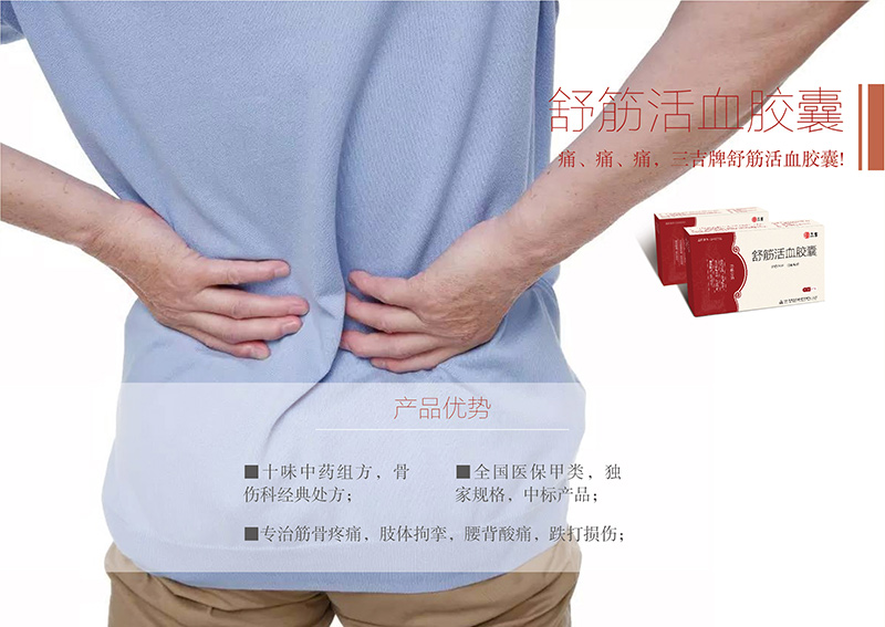 舒筋活血胶囊方选红花、狗脊、香加皮、伸筋草、槲寄生、鸡血藤、香附、自然铜、泽兰叶、络石藤十味中药,秉承传统、结合现代科技精制而成。诸药合用,舒筋活络,活血散淤。